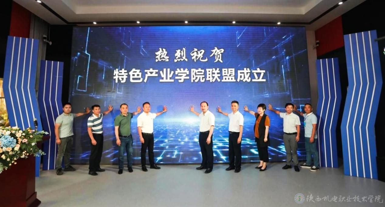 陜機(jī)電副校長(zhǎng)張新堂(右四)參加特色產(chǎn)業(yè)學(xué)院聯(lián)盟成立儀式
