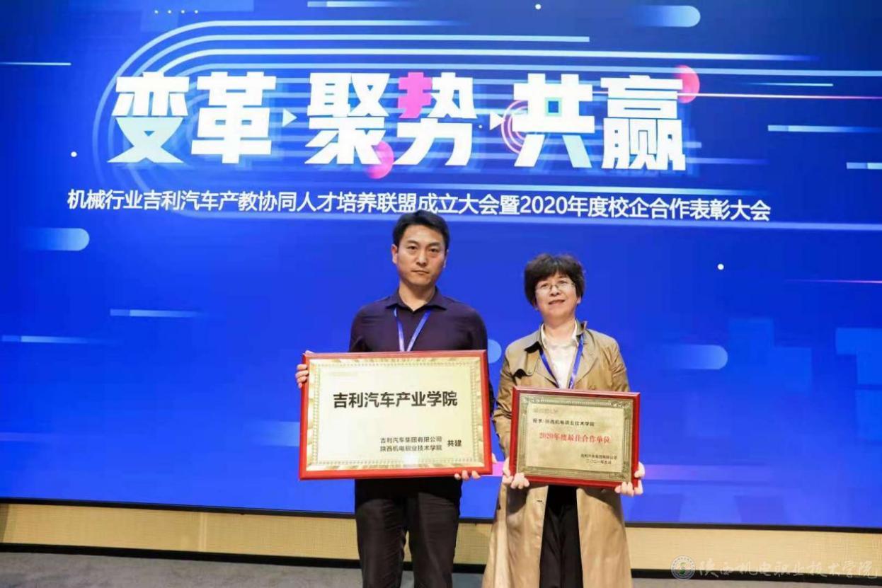 5月25日-27日,機械行業(yè)吉利汽車產(chǎn)教協(xié)同人才培養(yǎng)聯(lián)盟暨2020年校企合作表彰大會在寧波杭州灣隆重舉行。會上,吉利集團授予我?!?020年度吉利汽車最佳合作單位”榮譽稱號,頒發(fā)西北首家“吉利汽車產(chǎn)業(yè)學(xué)院”榮譽牌,也是陜西省合作單位中唯一獲此殊榮的學(xué)校,同時獲贈兩臺實訓(xùn)車。副院長徐圣月,招生就業(yè)處就業(yè)科科長李英儒受邀參加本次大會。