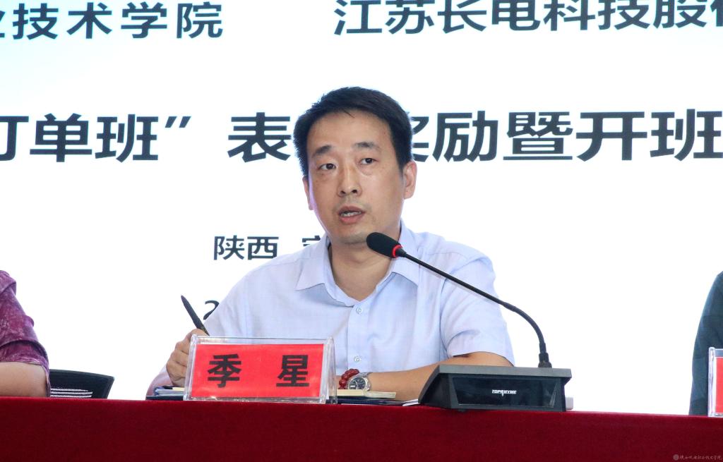 9月17日,我校隆重召開“長電訂單班”表彰暨開班儀式。江蘇長電科技股份有限公司(以下簡稱長電科技)人事部校企合作專案經(jīng)理季星、陜西機(jī)電職業(yè)技術(shù)學(xué)院副院長徐圣月、電子與信息學(xué)院院長姜有奇、智能制造學(xué)院副院長馬海彥及2020屆、2021屆“長電訂單班”輔導(dǎo)員、2021屆“長電訂單班”學(xué)生參會(huì)。會(huì)議由校企合作處副處長田正本主持。