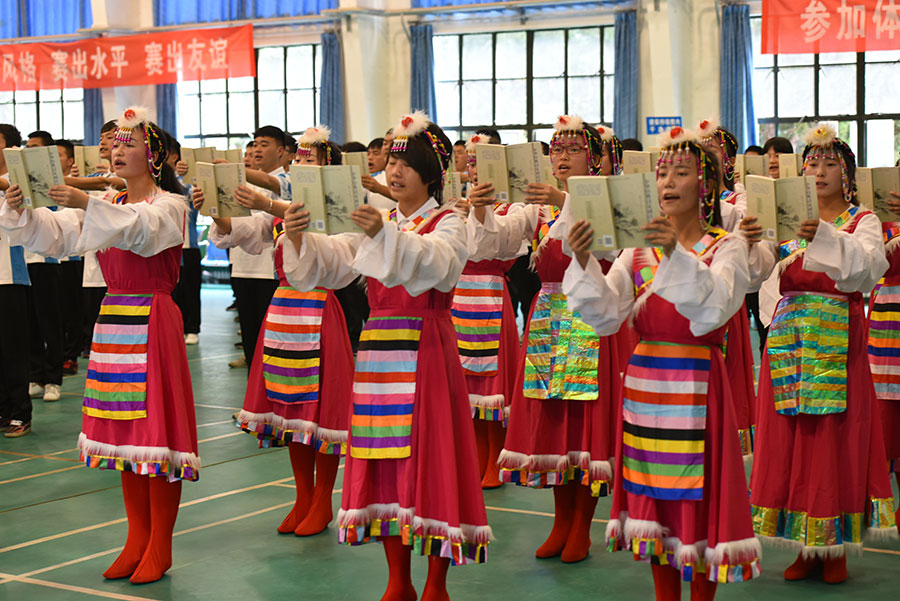 本次匯報(bào)表演內(nèi)容豐富、形式多樣,既有傳統(tǒng)的軍事技能展示,有宏偉嘹亮的軍歌,有威武雄壯的軍體拳、擒敵拳,也有時(shí)代特色鮮明的青春韻律健美操、民族特色鮮明的藏族舞和學(xué)生晨讀展示,充分展示了學(xué)院文化建設(shè)成果。