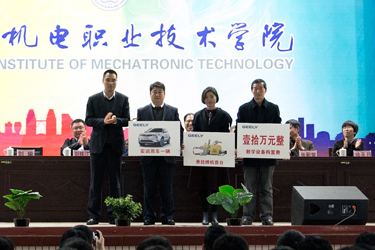 學(xué)院伊遜智院長、寶雞市教育局王偉波副局長、寶雞吉利汽車劉鐵江副總經(jīng)理先后致辭。期望通過校企深度合作,學(xué)院培養(yǎng)出更多優(yōu)秀的汽車制造人才,企業(yè)肩負更多社會責任,抓住基于,團結(jié)奮進,推動寶雞地區(qū)的汽車工業(yè)發(fā)展,共同為中國制造2025加油!