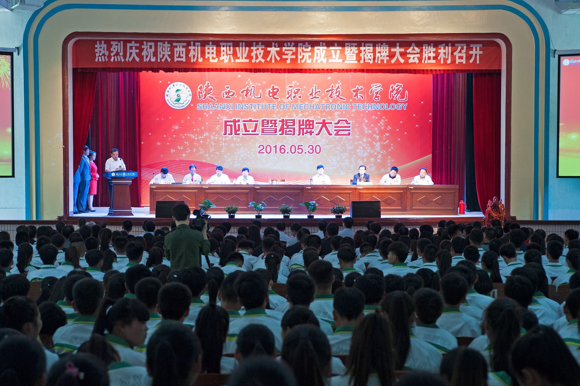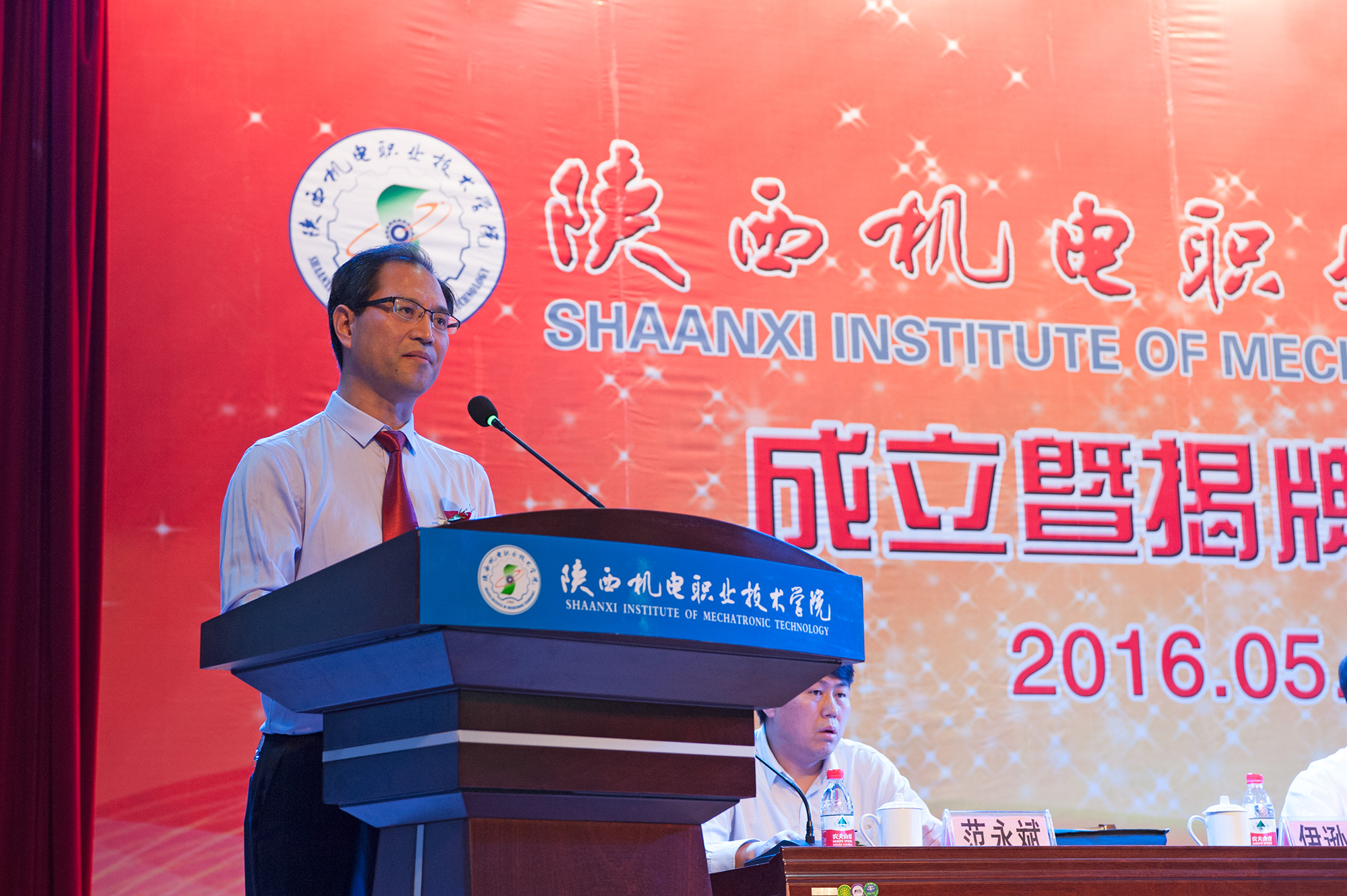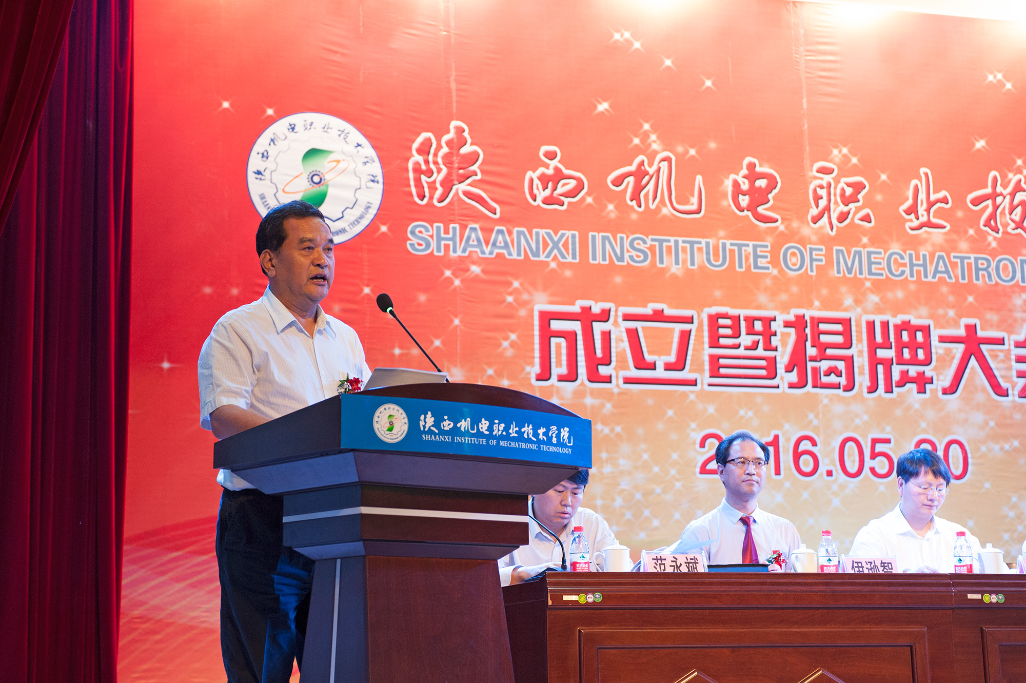 2016年5月30日下午,陜西機(jī)電職業(yè)技術(shù)學(xué)院成立暨揭牌大會(huì)在我校舉行,中共陜西省委高教工委書記李仲為、陜西省教育廳廳長(zhǎng)王建利出席會(huì)議并為我校揭牌,王建利宣讀《陜西省教育廳關(guān)于設(shè)置陜西機(jī)電職業(yè)技術(shù)學(xué)院的通知》,寶雞市政府副市長(zhǎng)武軍致辭,李仲為在講話中希望我校以揭牌為契機(jī),進(jìn)一步提升辦學(xué)質(zhì)量和辦學(xué)水平,更好地服務(wù)陜西經(jīng)濟(jì)社會(huì)發(fā)展。