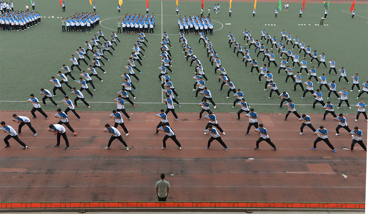 在匯報表揚中,各方隊分列式入場,步伐整齊地依次通過大會主席臺。同學(xué)們精神抖擻、士氣高昂、聽從指揮、隊列整齊、步伐一致、口號響亮,表現(xiàn)出訓(xùn)練有素的軍容軍姿、朝氣蓬勃的新生風(fēng)貌。在教官的指揮下,新生們一一表演了訓(xùn)練科目、軍體拳、擒敵拳、“舞動青春”韻律操表演、晨讀展示、內(nèi)務(wù)整理展示等,贏得了全場的熱烈掌聲。