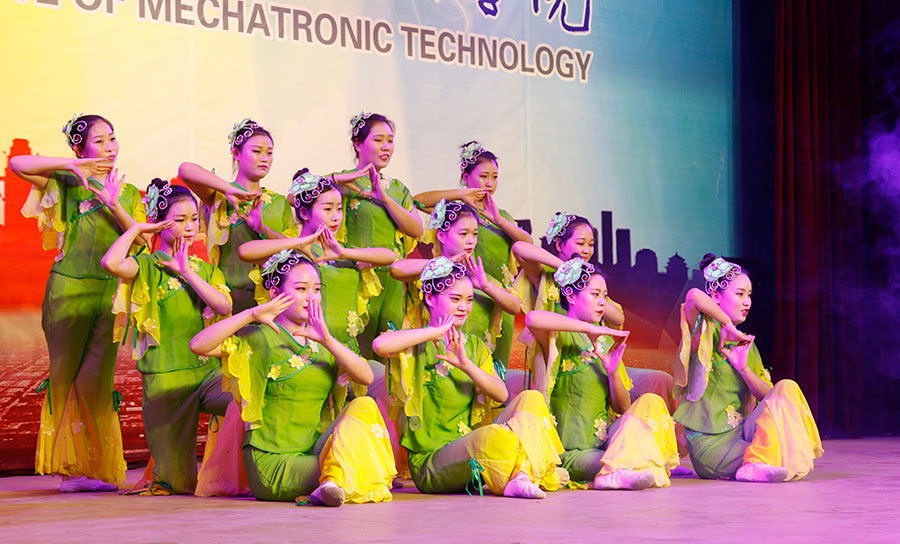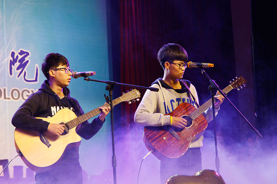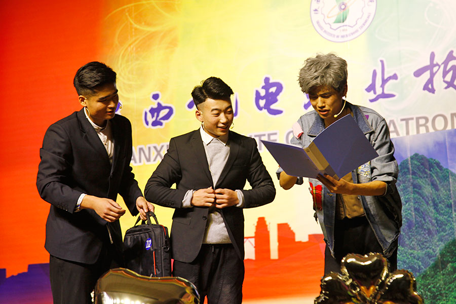在隨后的文藝晚會(huì)中,學(xué)生們表演了精彩紛呈的文藝節(jié)目,歡迎17級(jí)學(xué)生加入陜西機(jī)電職院這個(gè)大家庭,17級(jí)輔導(dǎo)員馬劍宇老師演唱了歌曲《five hundred milies》點(diǎn)燃了會(huì)場的氣氛。國旗班小品《訓(xùn)練場上》展現(xiàn)了軍人的風(fēng)姿,17級(jí)藏族學(xué)生嘎桑單曲演唱了藏語歌曲《我親愛的父母》表達(dá)了對(duì)父母的感恩,跆拳道協(xié)會(huì)的表演展現(xiàn)了學(xué)生堅(jiān)毅、吃苦耐勞的精神風(fēng)貌,也為本場晚會(huì)劃上了圓滿的句號(hào)。