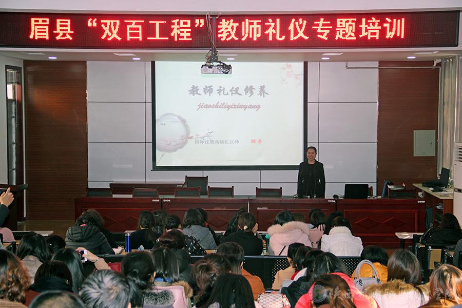 圖4:邢平副教授為眉縣職教中心等的教師作教師禮儀專題培訓(xùn)