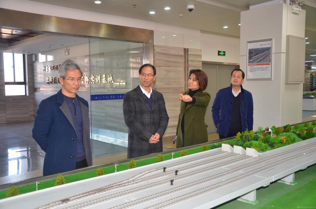 在南京鐵道職業(yè)技術(shù)學(xué)院黨委副書記、副院長(zhǎng)陸勇,院辦副主任唐飛的陪同下,伊遜智院長(zhǎng)和王迎尉主任參觀了南京鐵道學(xué)院的軌道交通綜合實(shí)訓(xùn)基地。該基地由高速鐵路綜合實(shí)訓(xùn)中心、地鐵綜合實(shí)訓(xùn)中心和高鐵教學(xué)站場(chǎng)三大部分構(gòu)成,目前處于全國(guó)領(lǐng)先水平。