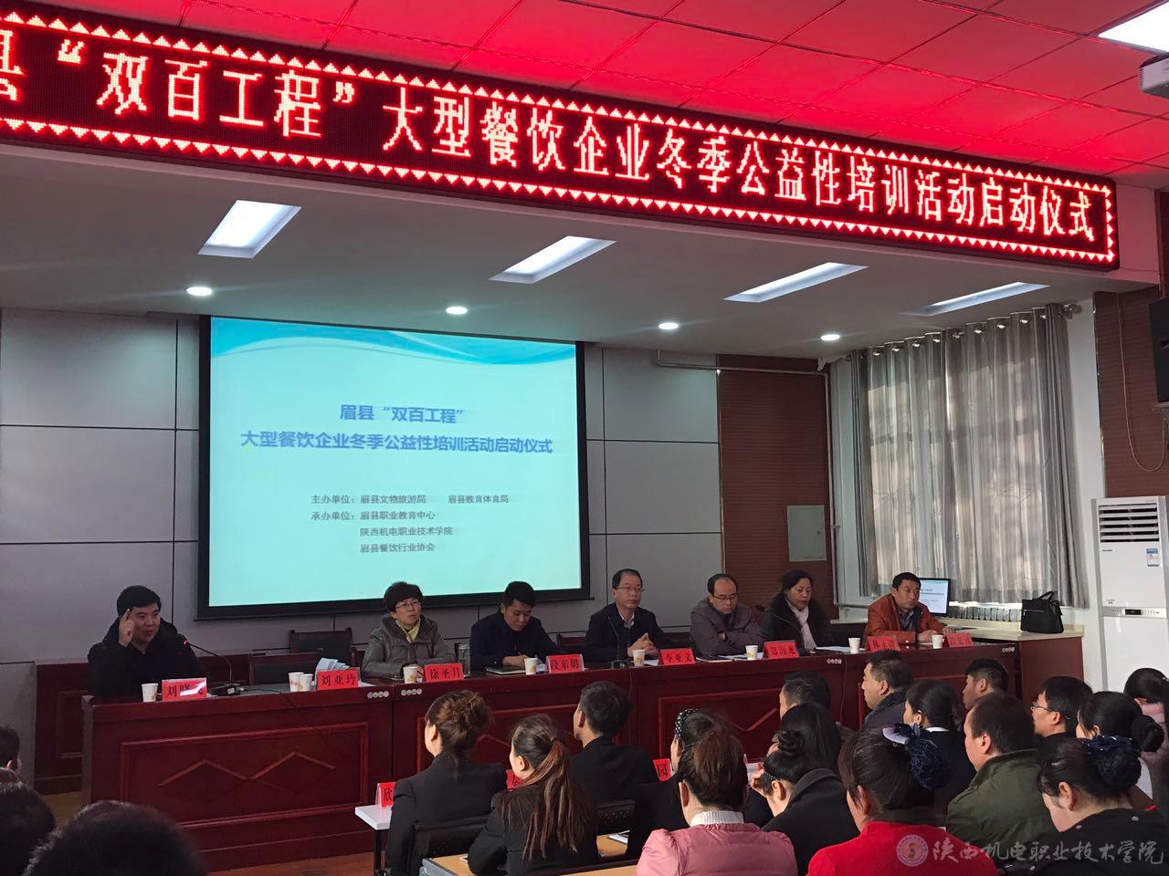 12月22日,為貫徹黨的十九大精神,進一步推動“雙百工程”結(jié)對幫扶工作,眉縣文物旅游局、眉縣教育體育局主主持召開“眉縣‘雙百工程’大型餐飲企業(yè)冬季公益性培訓活動”啟動儀式,我院作為培訓活動的主要承辦單位,黨委委員、副院長徐圣月出席啟動儀式。