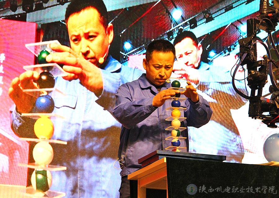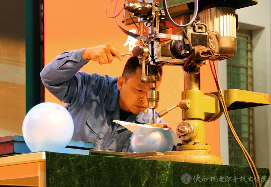 霍威同志從自身經(jīng)歷和感悟給在場師生生動講述了他在平凡的工作崗位上所做出不平凡的成績,以及成績背后常人難以想象的艱辛付出和心血汗水,充分展示了“愛崗敬業(yè)、爭創(chuàng)一流,艱苦奮斗、勇于創(chuàng)新,淡泊名利、甘于奉獻”的“工匠精神”,其飽滿的激情和動人的故事,贏得了同學(xué)們的陣陣掌聲。他還憑借高超而精湛的技藝,為在場師生展示了“鉆頭在氣球上鉆紙、紙破氣球不破”和“垂直壘臺球”兩項實操絕活,贏得了滿堂彩。