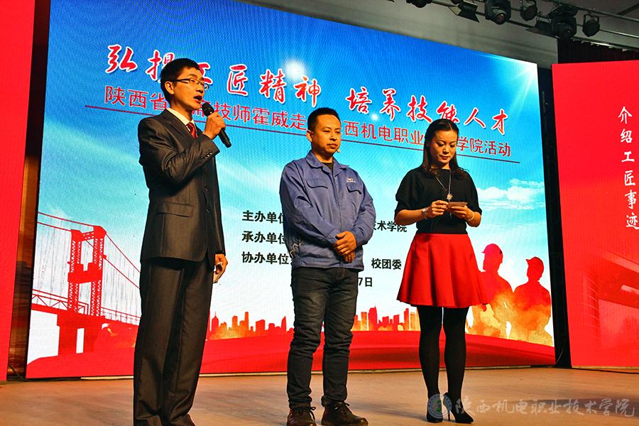 12月27日,陜西機電職業(yè)技術(shù)學(xué)院以“弘揚工匠精神,培養(yǎng)技能人才”為主題,舉辦“工匠進校園”活動,邀請省級技能大師工作室負責人、陜西省首席技師、陜西群力電工有限責任公司高級技師霍威走進校園,與學(xué)生面對面現(xiàn)身講解、交流互動、展示實操絕技,旨在傳遞正能量,激勵學(xué)生弘揚工匠精神、提升職業(yè)素養(yǎng),在最美的年齡做最值得的事。學(xué)院黨委副書記鄧新治、副院長張新堂和各教學(xué)部門負責人及1000余名師生參加了活動。