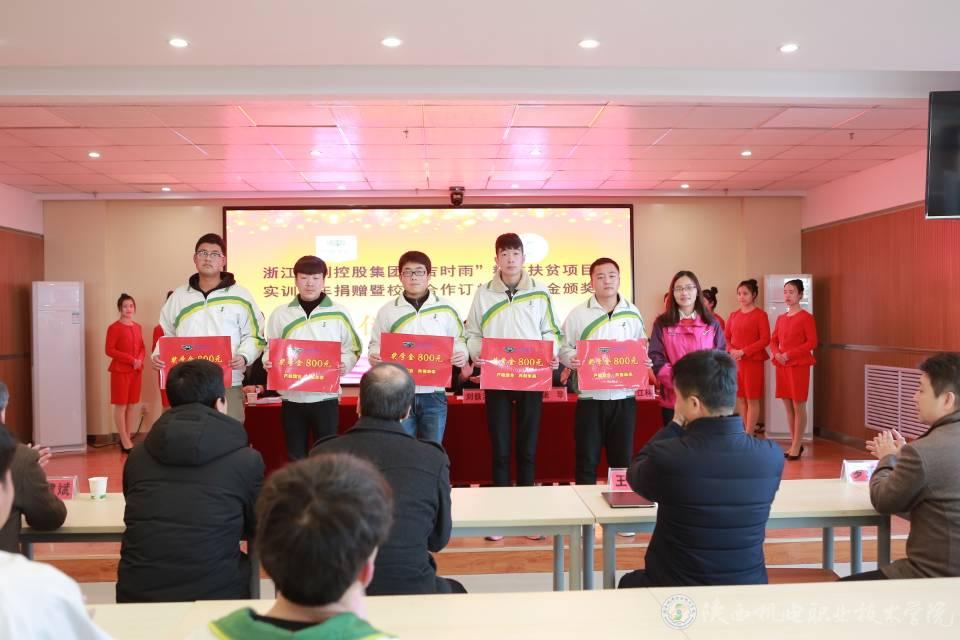 新年伊始,陜西機電職業(yè)技術(shù)學(xué)院2018年1月10日在汽車機電大樓4樓會議室隆重舉行“浙江吉利控股集團‘吉時雨’精準扶貧項目實訓(xùn)用車捐贈暨2017年度校企合作訂單班獎學(xué)金頒發(fā)儀式”。