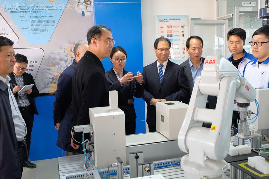 在學院新建的現(xiàn)代化汽車機電大樓,劉斌一行到機器人應用協(xié)同創(chuàng)新中心、電氣技術(shù)、智能控制應用技術(shù)中心、工業(yè)機器人技術(shù)應用、電器安裝與維護、高低壓供配電、吉利汽車“訂單班”等實訓教室,詳細了解學院特色專業(yè)建設(shè)、校企業(yè)合作等方面情況,對學院取得的發(fā)展成績予以肯定。