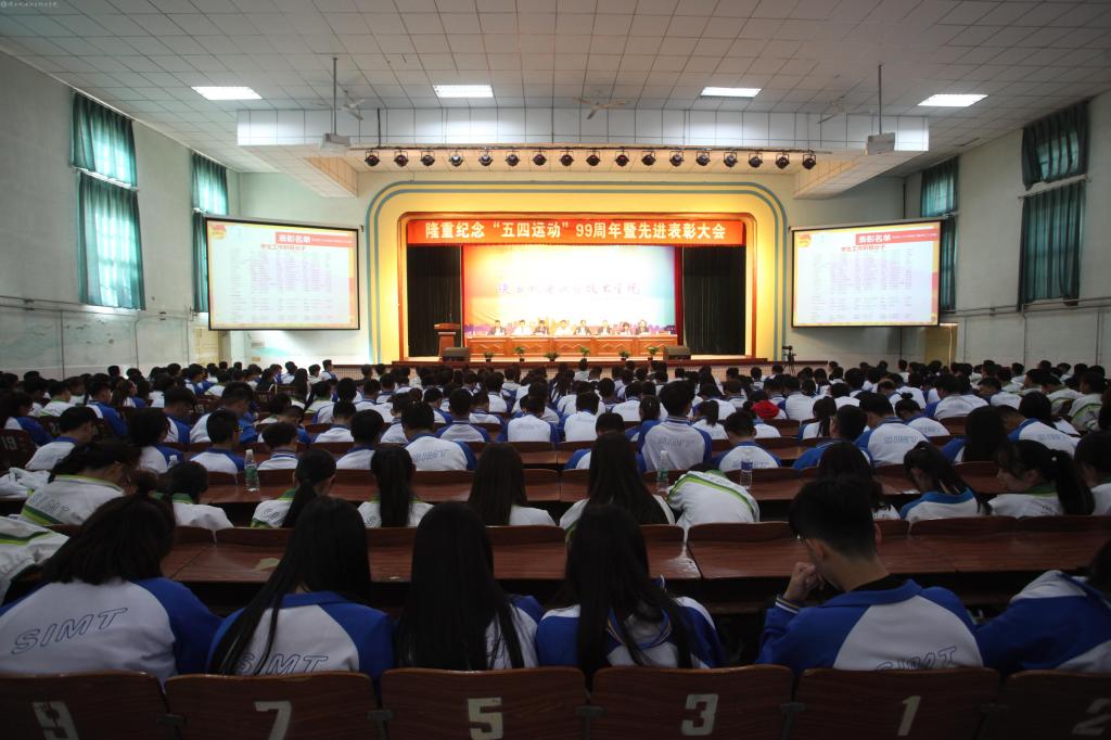 2018年5月3日下午,我院在大禮堂隆重召開“紀(jì)念五四運動99周年暨先進表彰大會",出席本次大會的領(lǐng)導(dǎo)有黨委書記、院長伊遜智,黨委副書記、紀(jì)委書記鄧新治,黨委委員、副院長張新堂,黨委委員、副院長徐圣月,院長助理趙爭東,學(xué)工部部長朱云潔,教務(wù)處處長王建斌。以及來自我院各級團支部的先進代表共計800余人參加了表彰大會,會議由團委書記李明主持。