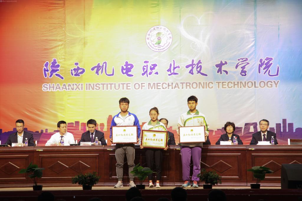 大會在莊嚴(yán)的國歌聲中拉開帷幕,黨委副書記、紀(jì)委書記鄧新治宣讀關(guān)于授予2017年度共青團工作優(yōu)秀獎和先進團組織的決定;黨委委員、院長助理趙爭東宣讀關(guān)于表彰2017-2018年度先進集體及先進個人的決定;學(xué)工部部長朱云潔宣讀關(guān)于表彰2017年“學(xué)憲法講憲法”演講比賽優(yōu)秀學(xué)生、優(yōu)秀指導(dǎo)教師和優(yōu)秀組織單位的決定;學(xué)生處關(guān)于表彰2018年“星級”文明宿舍的決定;教務(wù)處處長王建斌宣讀陜西機電職業(yè)技術(shù)學(xué)院關(guān)于表彰獎勵2018年微課教學(xué)比賽獲獎教師的決定,并進行了頒獎。14會計動漫高職班喻思思同學(xué)代表受表彰的學(xué)生進行了發(fā)言。