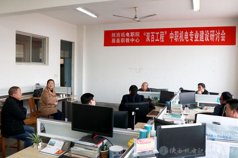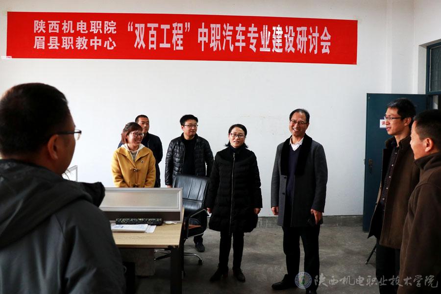 為全面落實“雙百工程”教育幫扶工作,助推眉縣脫貧攻堅,11月27日,陜西機電職業(yè)技術(shù)學(xué)院黨委書記伊遜智,黨委宣傳部長、工會副主席李明,信息工程系主任杜海軍等一行8人赴眉縣職教中心開展“雙百工程”教育幫扶,專業(yè)建設(shè)研討活動。
