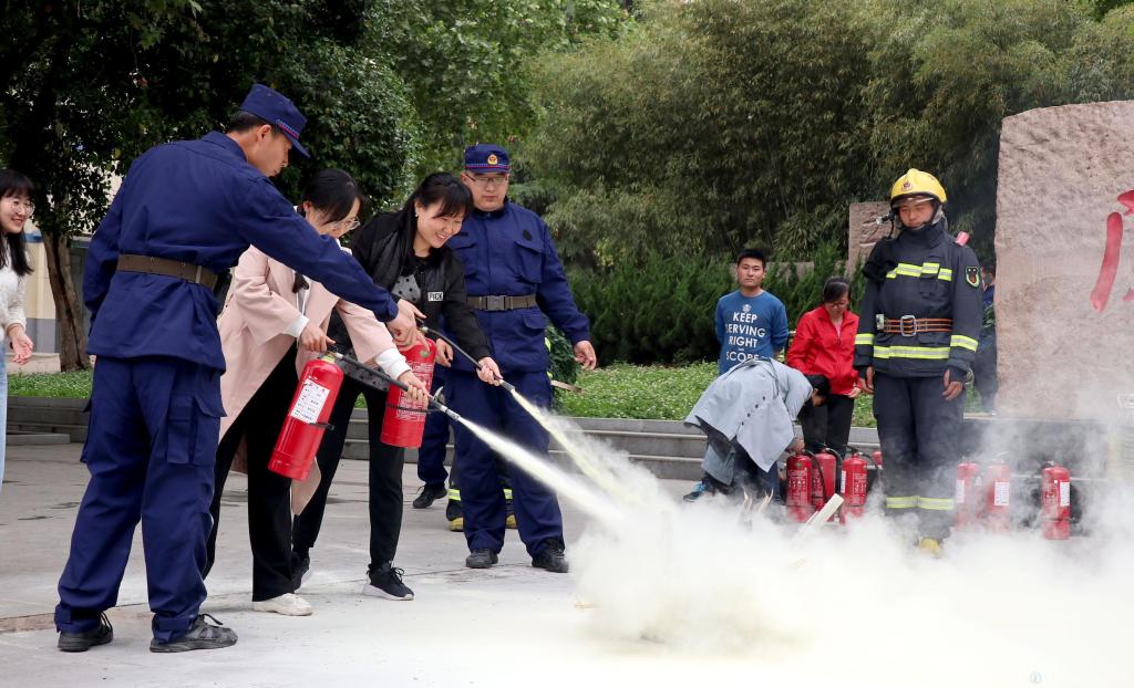 隨后寶雞市金臺區(qū)消防大隊巨福路支隊消防員點評我此次存在的問題,并給學院全體師生講解了滅火器的使用方法,帶領師生實地進行消防滅火演練。演練過程中,參與師生都能一絲不茍的進行使用滅火器滅火的標準動作和流程操作,達到預期效果。
