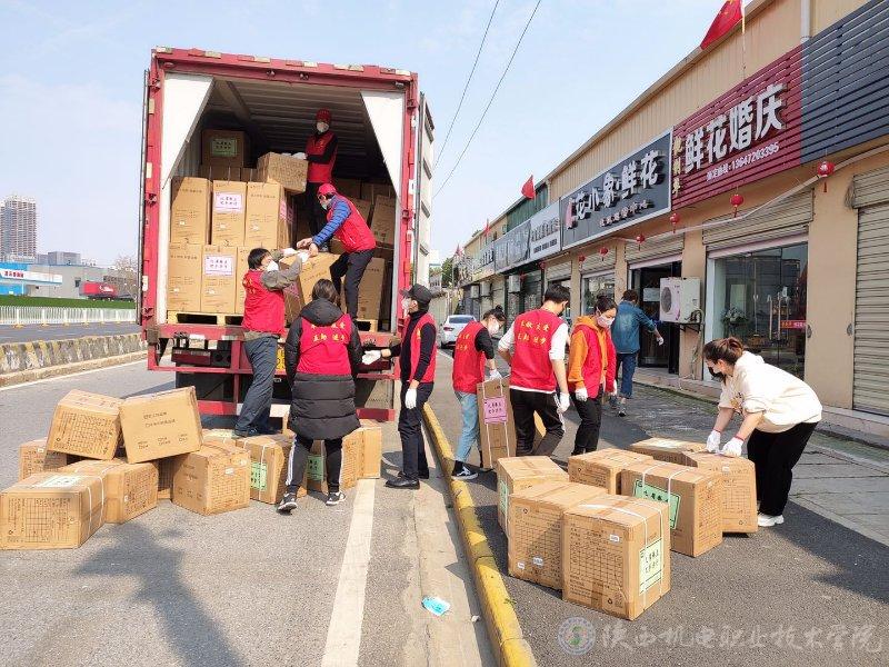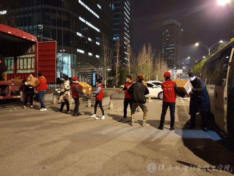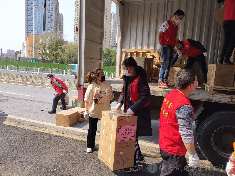 為甘肅醫(yī)療隊(duì)搬運(yùn)物資(圖中穿黑色衣服的是盧子昕)