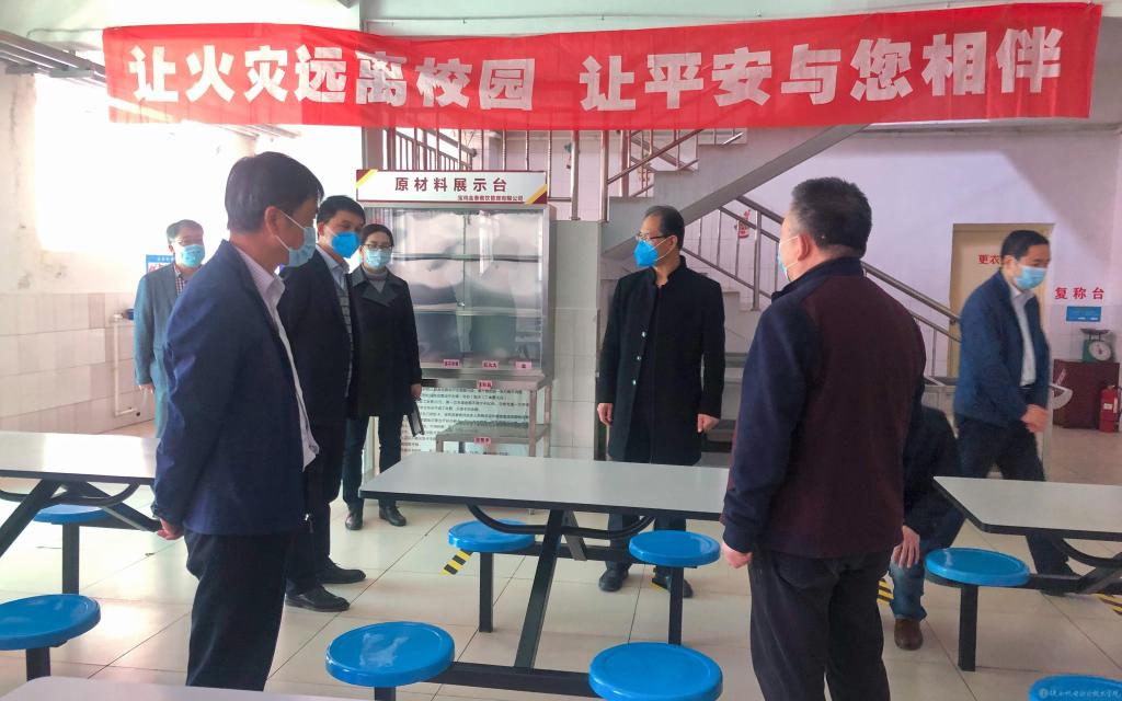 一行人員深入校醫(yī)務室、學生餐廳、教學樓、公寓樓、隔離區(qū)、視頻監(jiān)控室、防疫物資儲備室等場所,詳細檢查開學前疫情防控布控及復學前的各項準備工作,并現(xiàn)場提出整改意見及解決方案。