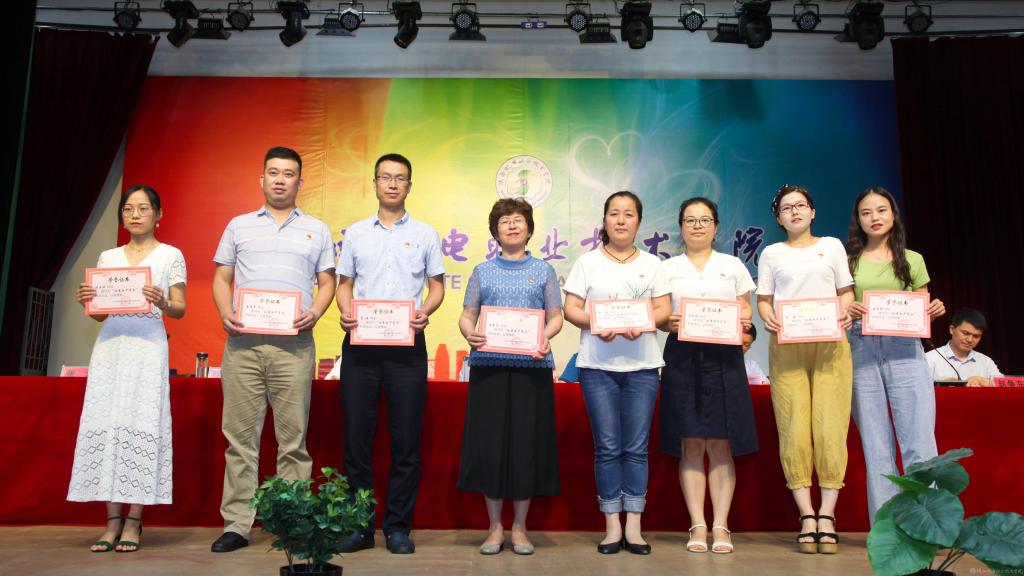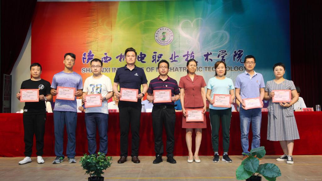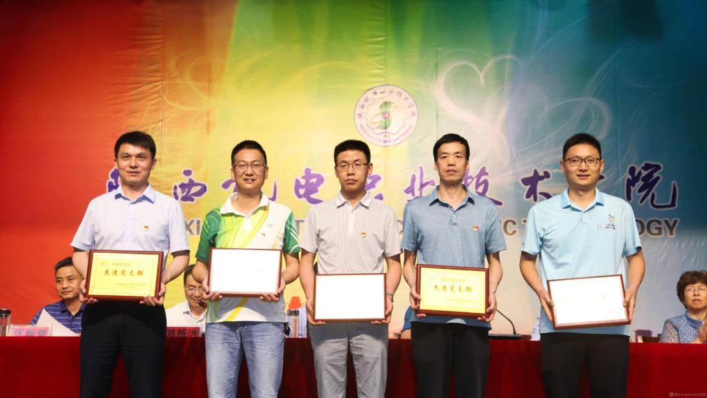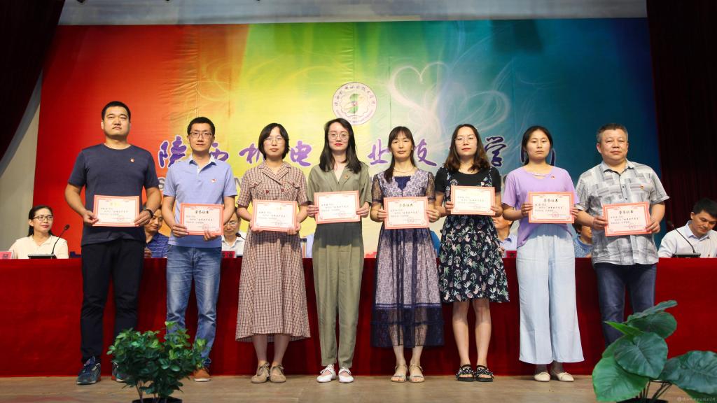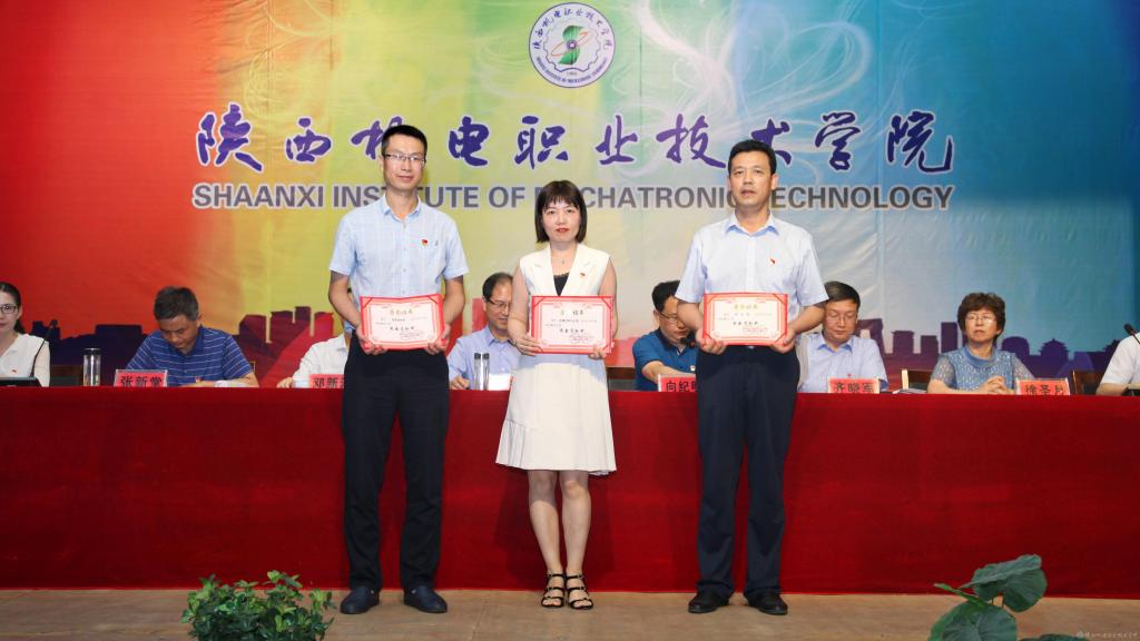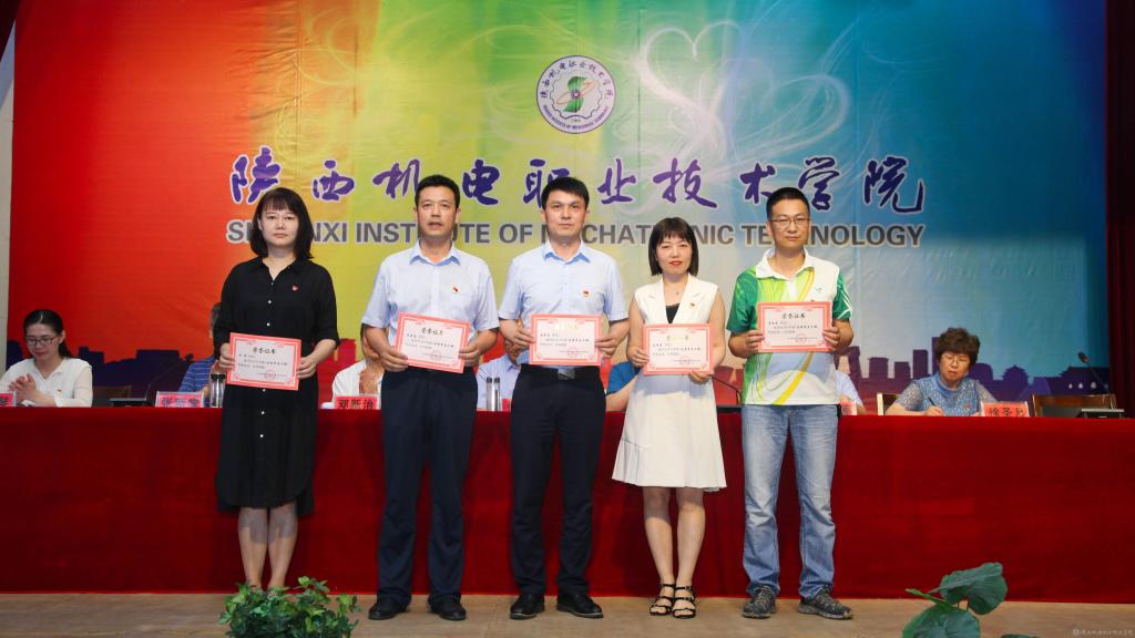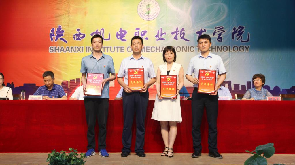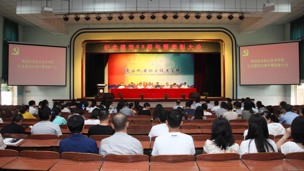 鄧新治宣讀《中共陜西機電職業(yè)技術學院委員會關于慶祝建黨99周年暨表彰先進黨支部、優(yōu)秀共產(chǎn)黨員、優(yōu)秀黨務工作者的決定》并頒獎,授予行政黨支部等5個單位“先進黨支部”,授予徐圣月等18名同志“優(yōu)秀共產(chǎn)黨員”稱號,授予邢平等3名同志“優(yōu)秀黨務工作者”榮譽稱號。