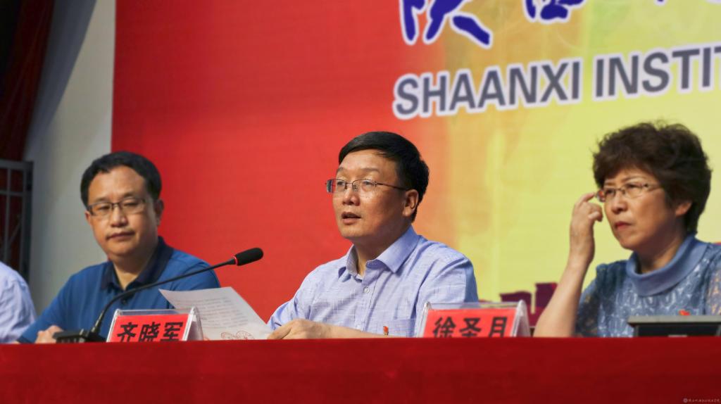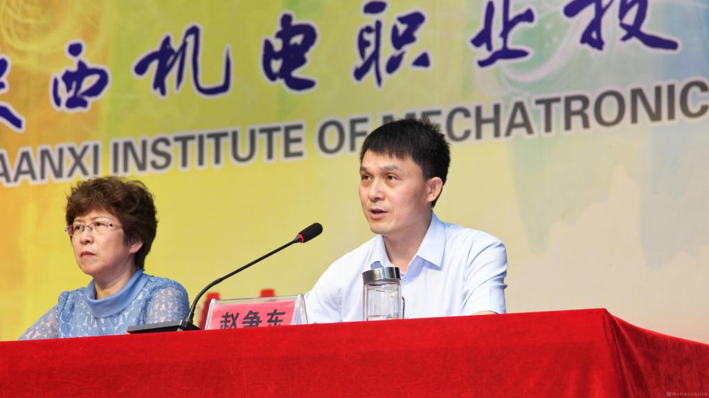 鄧新治宣讀《中共陜西機電職業(yè)技術學院委員會關于慶祝建黨99周年暨表彰先進黨支部、優(yōu)秀共產(chǎn)黨員、優(yōu)秀黨務工作者的決定》