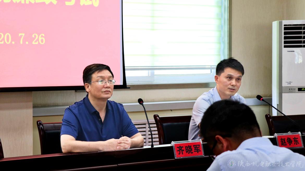 黨委副書記、紀(jì)委書記齊曉軍(左)及黨委委員、院長(zhǎng)助理趙爭(zhēng)東講話