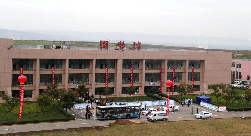 陜西機(jī)電職業(yè)技術(shù)學(xué)院蟠龍校區(qū)圖書(shū)館前迎新布展