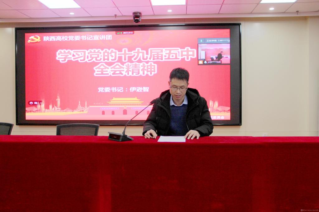 12月14日下午,陜西機(jī)電職業(yè)技術(shù)學(xué)院黨委召開黨的十九屆五中全會精神宣講報告會,黨委書記伊遜智作宣講報告。報告會由黨委宣傳部部長李明主持。