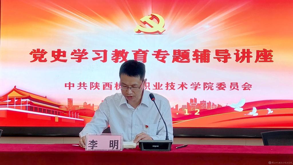 5月12日下午,陜西機(jī)電職業(yè)技術(shù)學(xué)院開展黨史學(xué)習(xí)教育專題講座。特邀寶雞市委黨校楊娟珍副教授為全校黨員作題為《來之不易的選擇——從社會主義建設(shè)史看道路自信》的講座。黨委宣傳部部長、黨史學(xué)習(xí)教育領(lǐng)導(dǎo)小組辦公室主任李明主持。