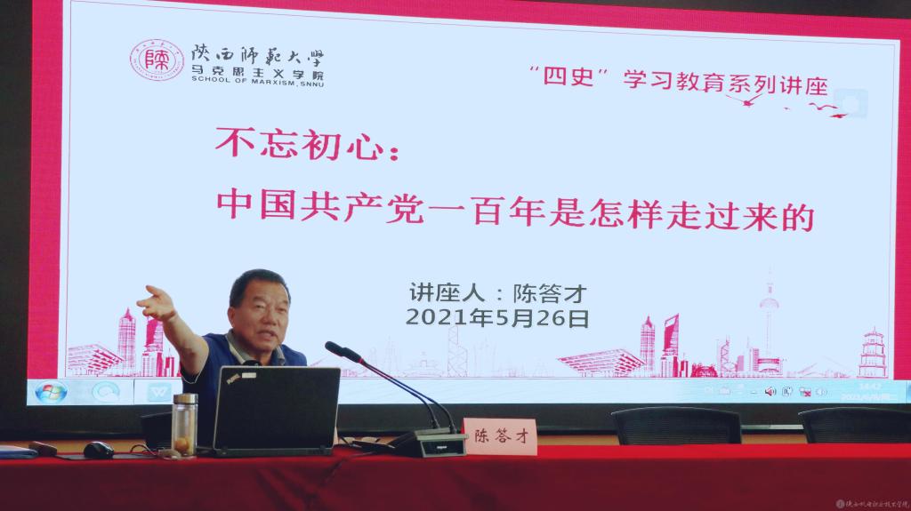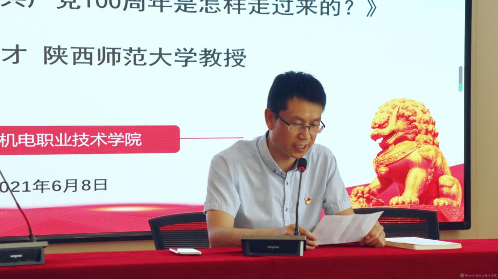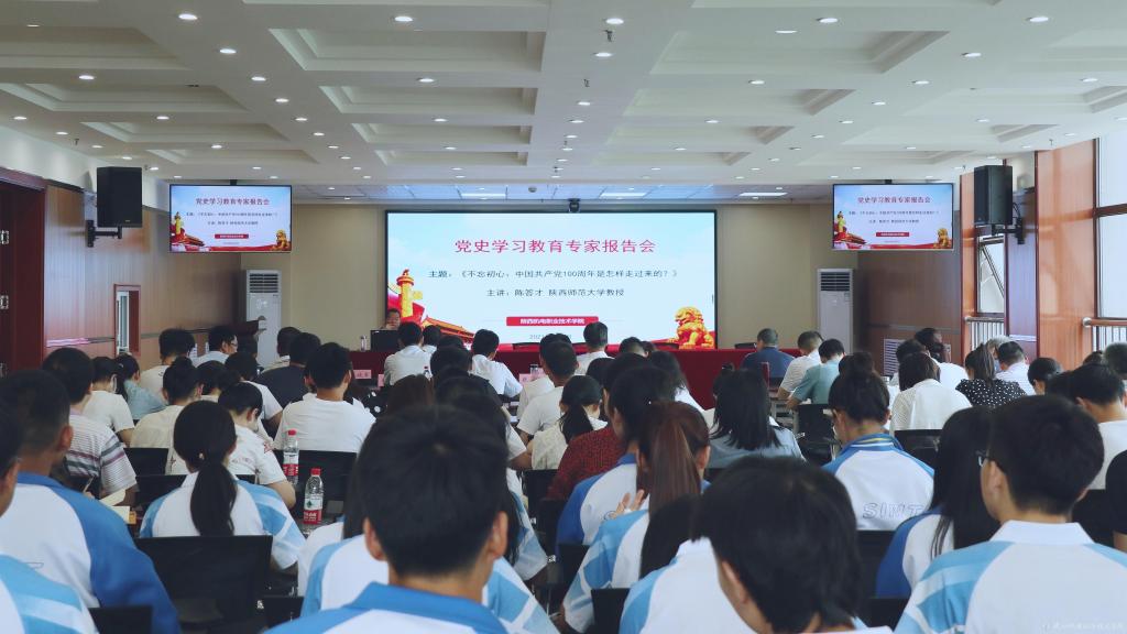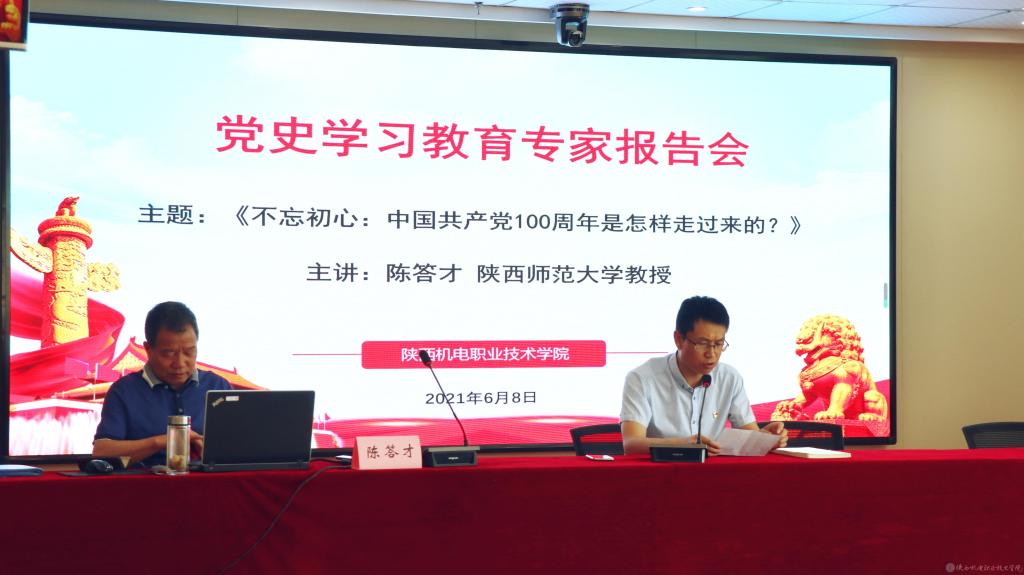 根據(jù)《中共陜西省委教育工委陜西省教育廳開展黨史學(xué)習(xí)教育專題宣講工作方案》的通知要求,結(jié)合我校黨史學(xué)習(xí)教育工作安排。6月8日下午,陜西師范大學(xué)陳答才教授在我校寶福路校區(qū)汽車機電大樓(四樓)視頻會議室進行題為《不忘初心:中國共產(chǎn)黨100周年是怎樣走過來的?》黨史學(xué)習(xí)教育專題講座。講座由黨委宣傳部部長李明主持。