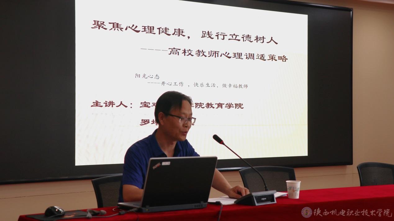 根據(jù)學(xué)校本年度教師素養(yǎng)提升計劃,為促進(jìn)我校教師的心理健康,以陽光的心態(tài)管理情緒應(yīng)對壓力,開心工作,快樂生活,做幸福教師,教師發(fā)展中心于6月23日下午,邀請寶雞文理學(xué)院教育科學(xué)研究所副所長、陜西省心理學(xué)會理事、寶雞市心理學(xué)會會長羅增讓教授在寶福路校區(qū)汽車機(jī)電大樓會議室為全校教職工作題為《聚焦心理健康踐行立德樹人——高校教師心理健康調(diào)適策略》的心理健康知識講座。