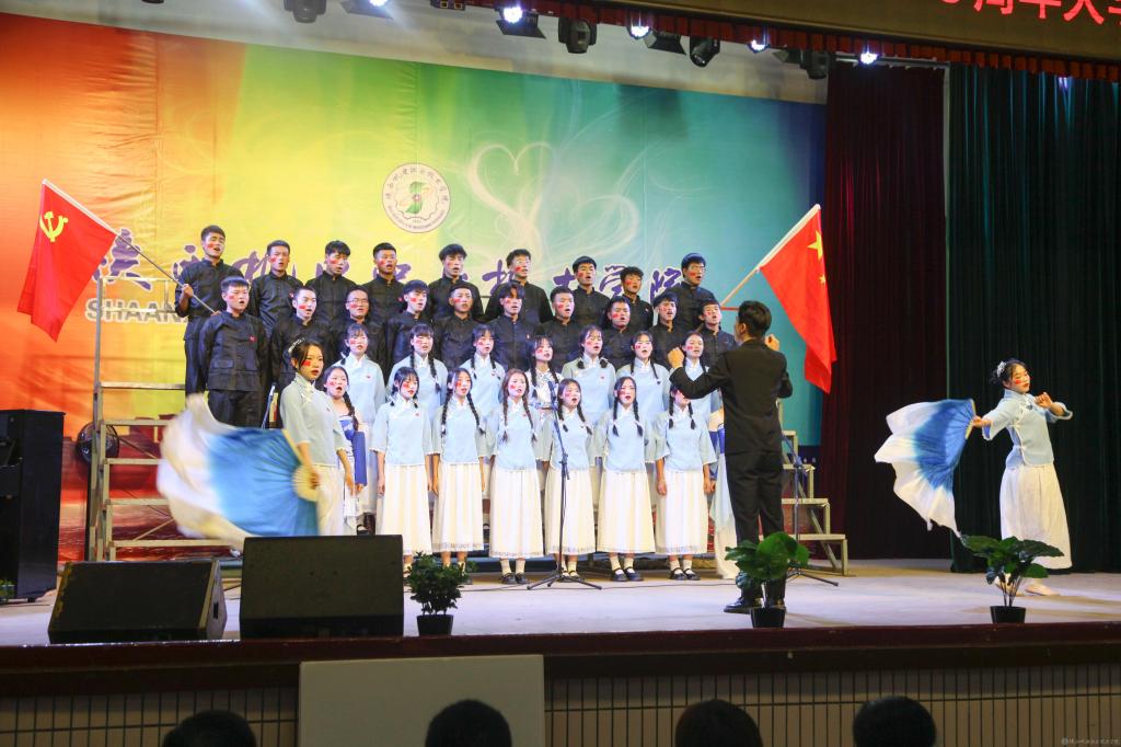 與會領(lǐng)導(dǎo)和師生合唱《沒有共產(chǎn)黨就沒有新中國》