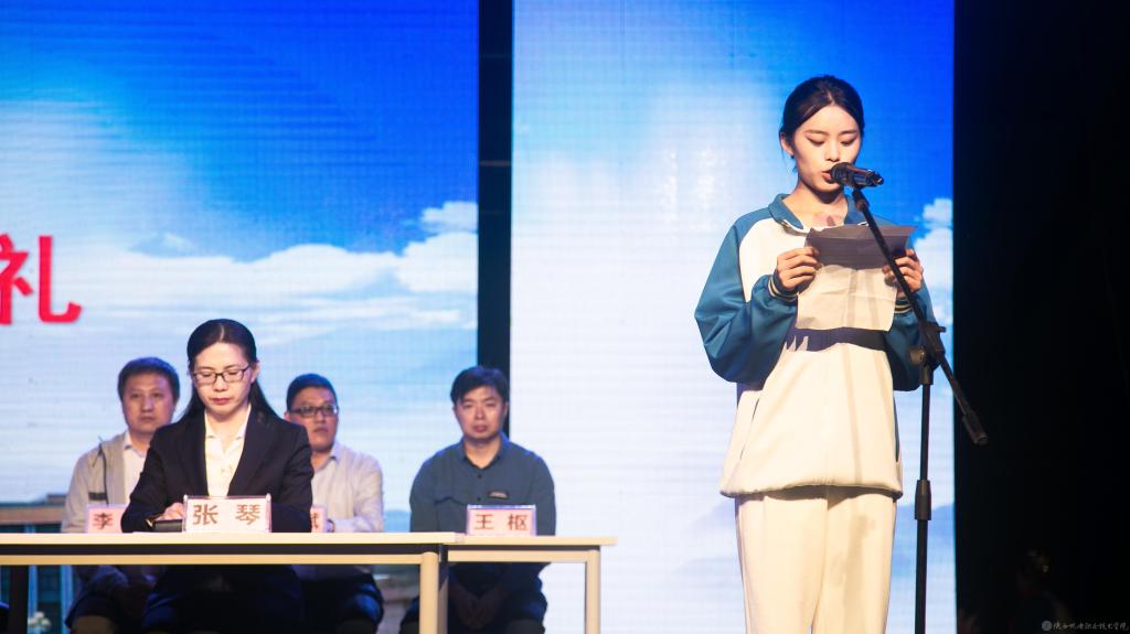張琴宣讀《關(guān)于對2021年“互聯(lián)網(wǎng)+”大學(xué)生創(chuàng)新創(chuàng)業(yè)大賽中我校優(yōu)秀指導(dǎo)教師和獲獎(jiǎng)選手進(jìn)行表彰獎(jiǎng)勵(lì)的決定》和《關(guān)于對我校第十五屆學(xué)生技能大賽優(yōu)秀組織班級及獲獎(jiǎng)選手進(jìn)行表彰獎(jiǎng)勵(lì)的決定》