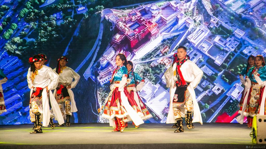 緊接著,熱情奔放的藏族姑娘為大家?guī)砹宋璧浮稛岚凸奈琛泛汀毒壎ㄋ_瑪志》,展現(xiàn)了藏族同胞的獨(dú)特魅力。
