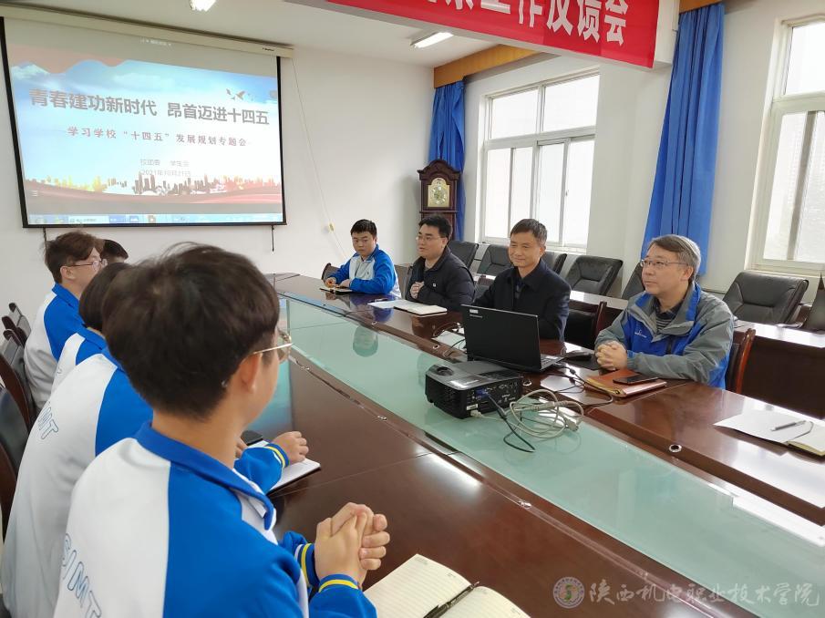 王建斌輔導(dǎo)大家學(xué)習(xí)了《陜西機(jī)電職業(yè)技術(shù)學(xué)院十四五發(fā)展規(guī)劃》內(nèi)容,并重點(diǎn)解讀了指導(dǎo)思想、發(fā)展思路、發(fā)展目標(biāo)、主要任務(wù)、保障措施等五個(gè)方面的要點(diǎn)內(nèi)容。