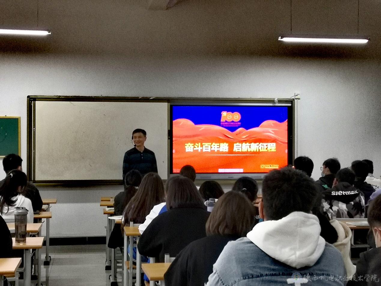 10月21日下午,副院長(zhǎng)張新堂在博學(xué)樓416教室,為21網(wǎng)絡(luò)技術(shù)1、2和21大數(shù)據(jù)合班80余名學(xué)生上形勢(shì)與政策課,講授《奮斗百年路,啟航新征程》專題內(nèi)容。