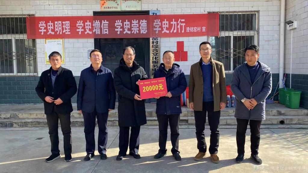 隨后,代表陜西機電職業(yè)技術(shù)學(xué)院黨委,向澄銘窯村定點幫扶的6戶困難村民送去了棉被、大米和菜油,為澄銘窯村修建衛(wèi)生室、貫通便民橋、援建衛(wèi)生廁所舉行了捐贈儀式。鼓勵他們樹立信心,直面困難,增加收入,早日在鄉(xiāng)村振興的浩瀚潮流中激流勇進,過上幸福美好新生活。