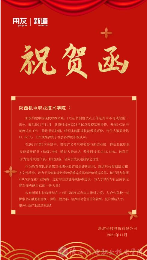我校經(jīng)管與藝術(shù)學(xué)院在全國(guó)1+X證書(shū)《業(yè)財(cái)一體信息化應(yīng)用》職業(yè)技能等級(jí)考核試點(diǎn)中被評(píng)為優(yōu)秀院校代表
