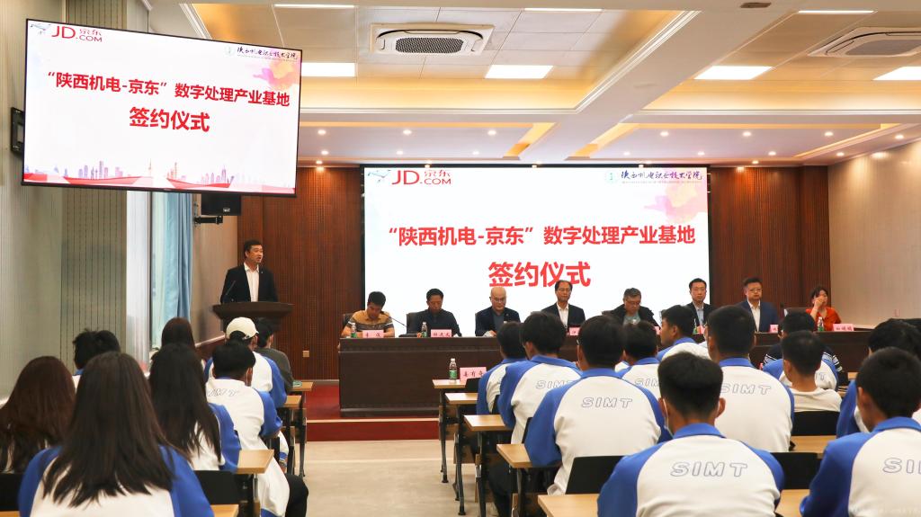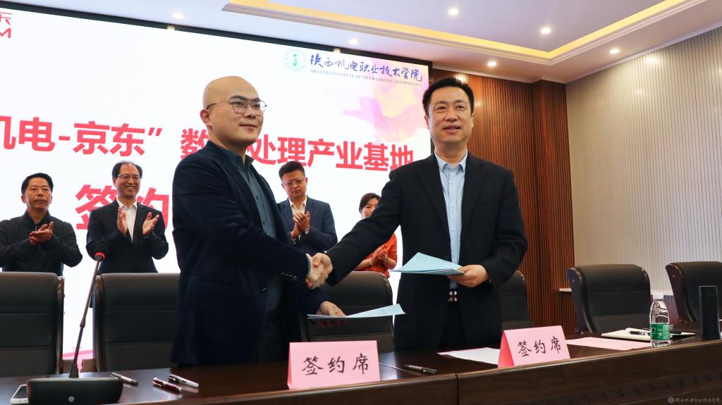 5月25日上午,陜西機電職業(yè)技術(shù)學(xué)院與京東集團共建數(shù)字處理產(chǎn)業(yè)基地簽約儀式在陜西機電職業(yè)技術(shù)學(xué)院蟠龍校區(qū)成功舉行。出席本次簽約儀式的政府代表有寶雞市招商局副局長索雙海、寶雞市招商局調(diào)研員兼項目科長杜進文、蟠龍新區(qū)招商局長李俊。出席儀式的企業(yè)代表有陜西海燃數(shù)智信息科技有限公司董事長李金澤、副董事長陳肖霖。出席儀式的學(xué)校代表有黨委書記伊遜智,黨委委員、副校長張克,及教務(wù)處、校企合作處、電子與信息學(xué)院等部門負責(zé)人。本次簽約儀式由電子與信息學(xué)院院長姜有奇主持。