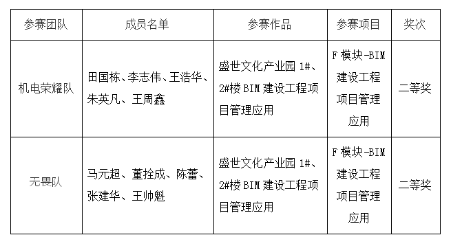 經(jīng)過來自全國各高校的幾百位專家網(wǎng)絡評審,我校選送的“盛世文化產(chǎn)業(yè)園1、2#樓BIM建設工程項目管理應用”“盛世文化產(chǎn)業(yè)園5#樓BIM建設工程項目管理應用”兩個作品均獲二等獎。