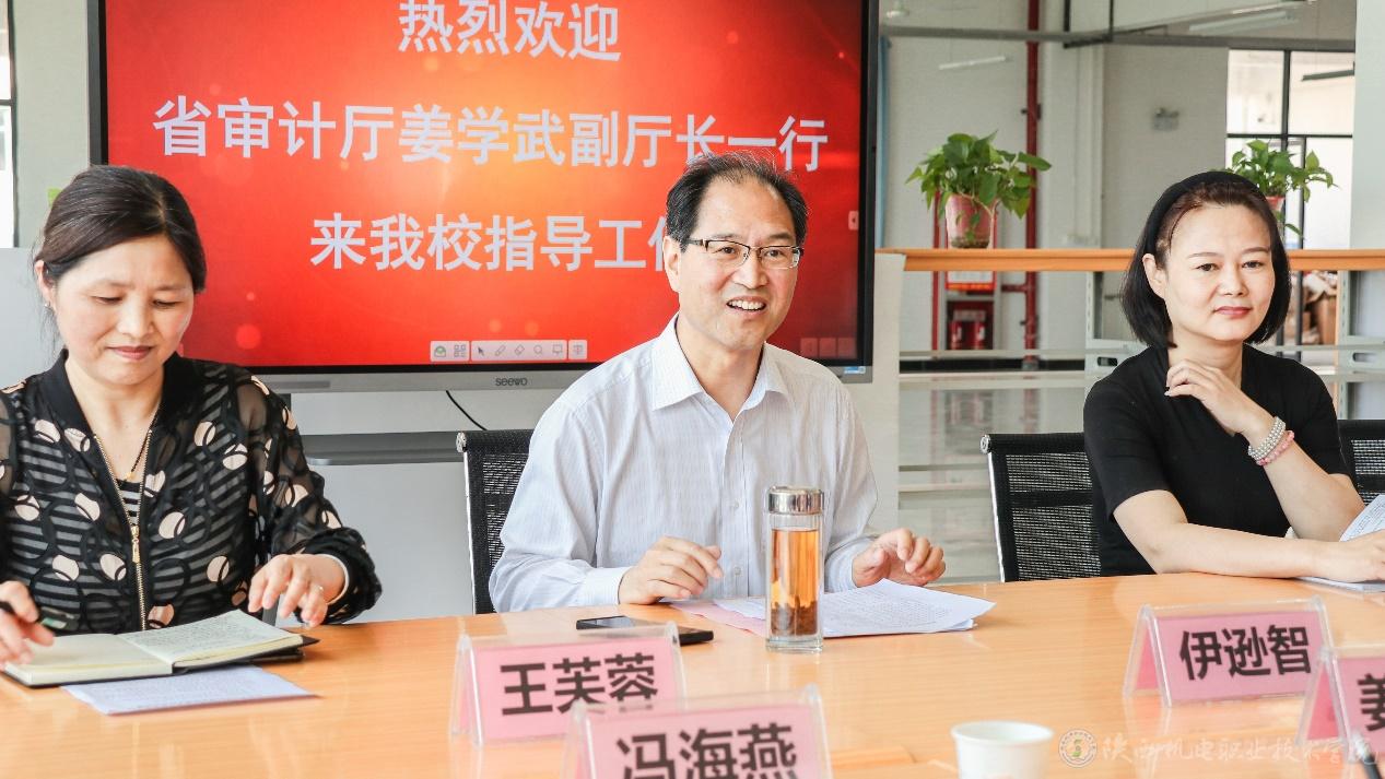 6月1日,省審計廳副廳長姜學武一行蒞臨我校檢查指導內(nèi)部審計工作,在蟠龍校區(qū)圖書樓二樓召開內(nèi)部審計工作座談會。寶雞市審計局副局長李虎勤參加會議,學校黨委書記伊遜智致歡迎詞。會議由省審計廳內(nèi)部審計指導監(jiān)督處馮海燕處長主持。
