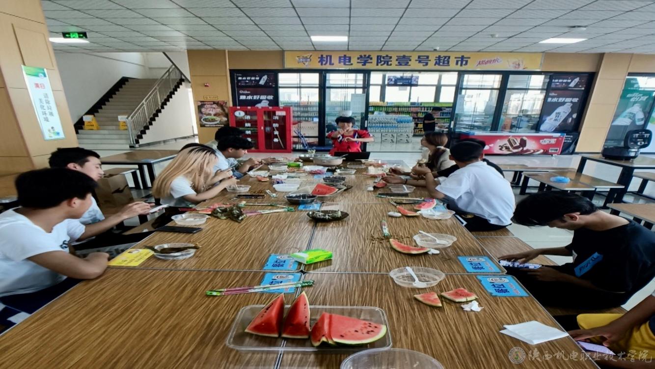 看著桌上擺放著“愛(ài)心粽子”、抓飯、涼拌菜、西瓜、櫻桃、愛(ài)意滿滿。一個(gè)個(gè)小小的粽子,一碗碗香噴噴的抓飯,讓學(xué)生感受到了濃郁的文化氣息以及學(xué)校大家庭的溫暖!下午剛剛參加了學(xué)校舞蹈技能大賽的布威海麗且姆·艾麥提同學(xué)即興為大家獻(xiàn)上維吾爾族舞蹈一一頂碗舞,同學(xué)們紛紛對(duì)她在大賽中取得的優(yōu)異成績(jī)表示祝賀。