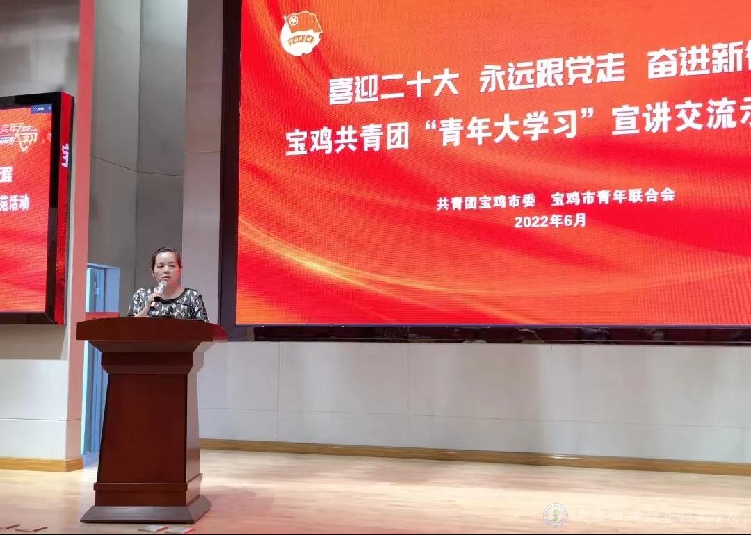 在當天的首場示范宣講會上,3名“團市委青年講師團”成員分別圍繞學習宣傳貫徹習近平總書記重要講話精神,省、市黨代會精神,青年成長成才方向作了主題宣講。作為3位青年宣講員之一,“團市委青年講師團”成員、我校教務處齊曉紅老師做了《學好百年團史 凝聚奮進力量》主題宣講。