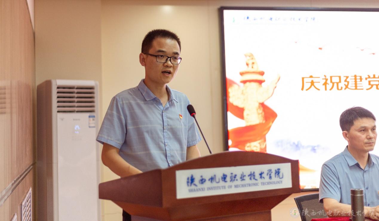 隨后,優(yōu)秀黨員代表李鵬老師發(fā)言,他表示將繼續(xù)傳承和發(fā)揚好機電人艱苦樸素、敢打硬仗、奮勇爭先的優(yōu)良作風,切實發(fā)揮黨員教師的模范帶頭作用。一要堅定理想信念,不斷學習提升。二要立足本職工作,主動擔當作為。三要勇于攻堅克難,不斷開拓進取。作為學校的一份子,發(fā)揮主人翁意識,在學校黨委的正確領導下,團結一致,凝心聚力,強化共同體意識,著力打造機電發(fā)展共同體、命運共同體、奮斗共同體,保持永不懈怠的精神狀態(tài)和一往無前的奮斗姿態(tài),以“踏平坎坷成大道,斗罷艱險又出發(fā)”的頑強意志,一步一個腳印的把我校建設成為特色鮮明的高水平職業(yè)院校,以嶄新的成績迎接黨的二十大勝利召開!