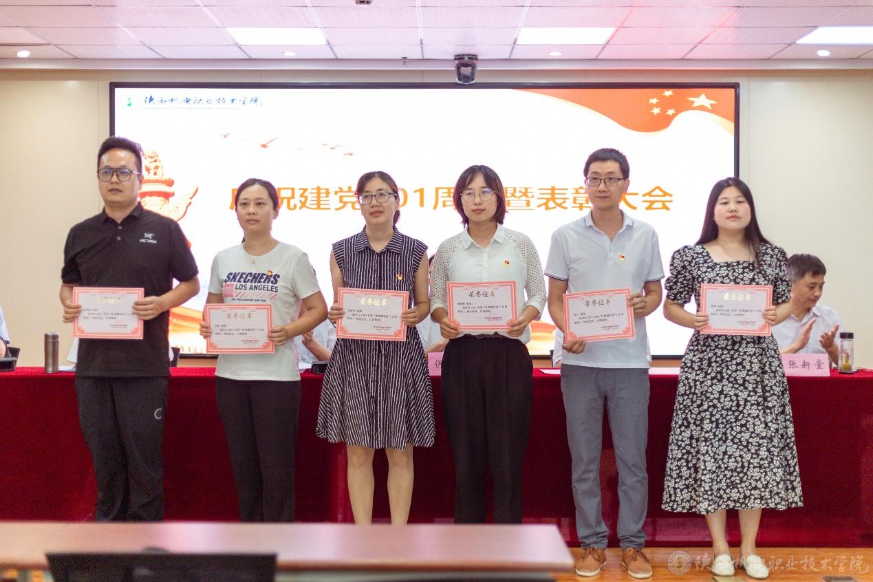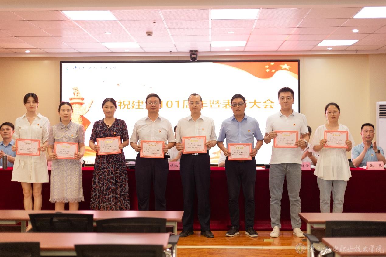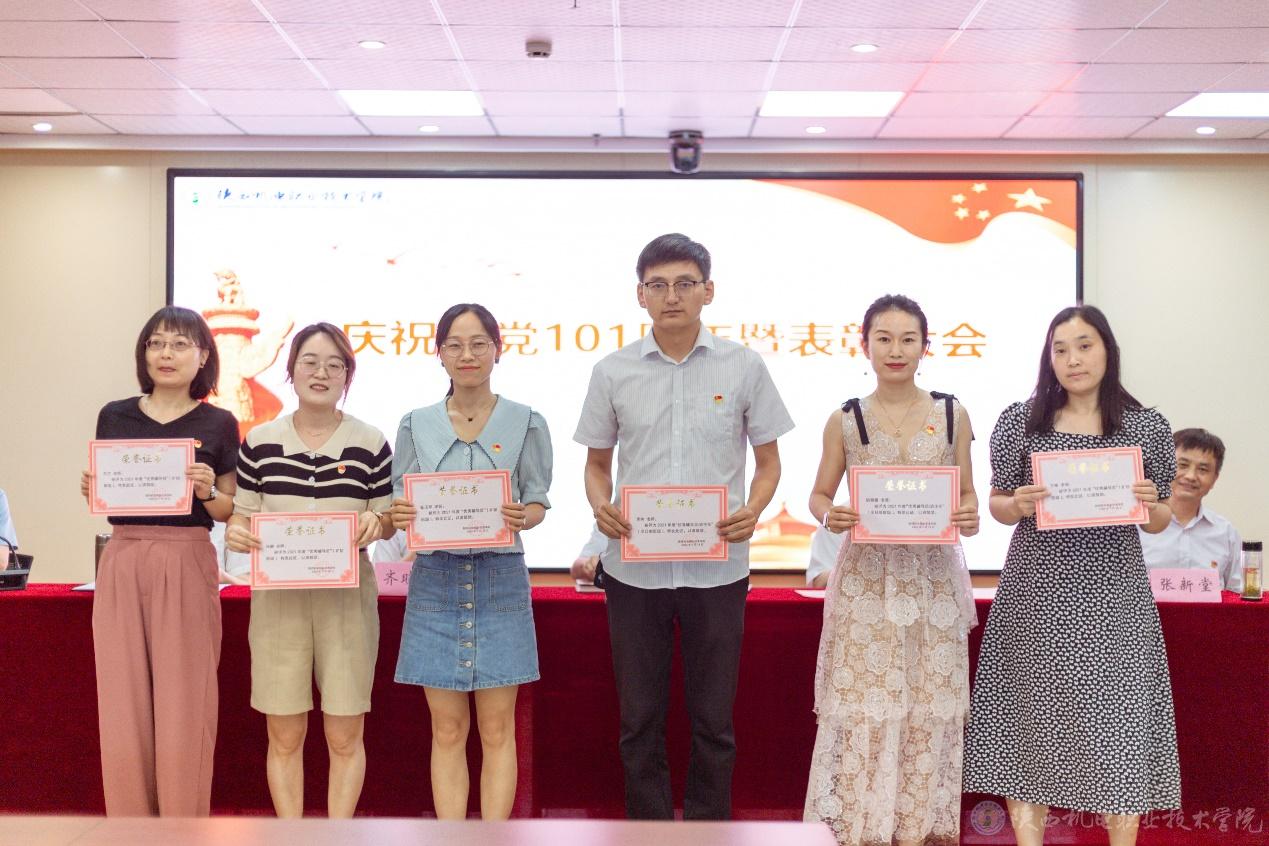 副院長張新堂宣讀《關于慶祝建黨101周年暨表彰“先進黨支部”“優(yōu)秀共產黨員”“優(yōu)秀黨務工作者”的決定》并向3個先進黨支部、32位優(yōu)秀共產黨員、以及14位優(yōu)秀黨務工作者頒獎。