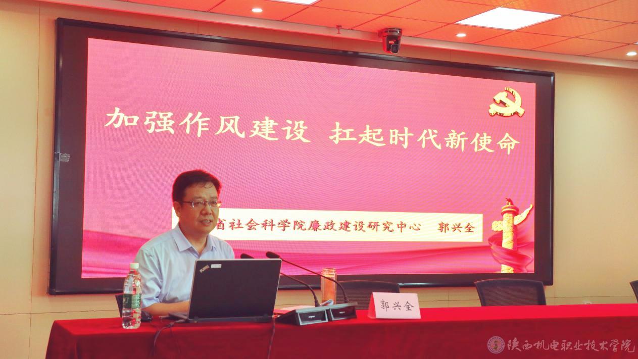 陜西省社會科學院政治與法律研究所所長、廉政建設研究中心主任郭興全作題為《加強作風建設,扛起時代新使命》的專題報告。