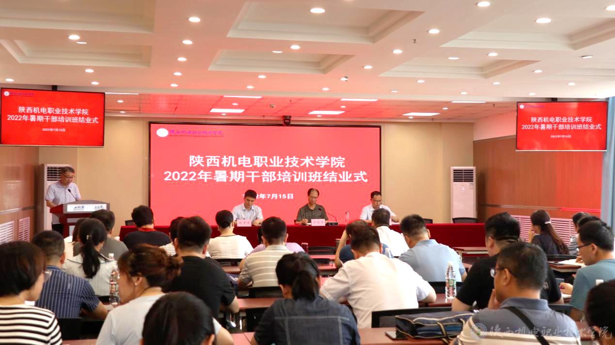 2022年7月15日,陜西機電職業(yè)技術學院在寶福路校區(qū)汽車機電大樓視頻會議室舉辦2022年暑期干部培訓班結業(yè)儀式。黨委書記伊遜智出席結業(yè)儀式并作總結講話,黨委副書記、院長向紀明,黨委委員、院長助理趙爭東出席會議。全校科級以上干部、系主任、室主任參加會議,會議由趙爭東同志主持。