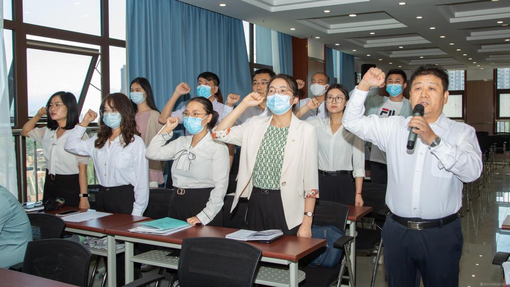 人事處處長、教發(fā)中心主任羅亞軍帶領(lǐng)新進教師宣誓