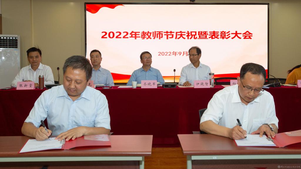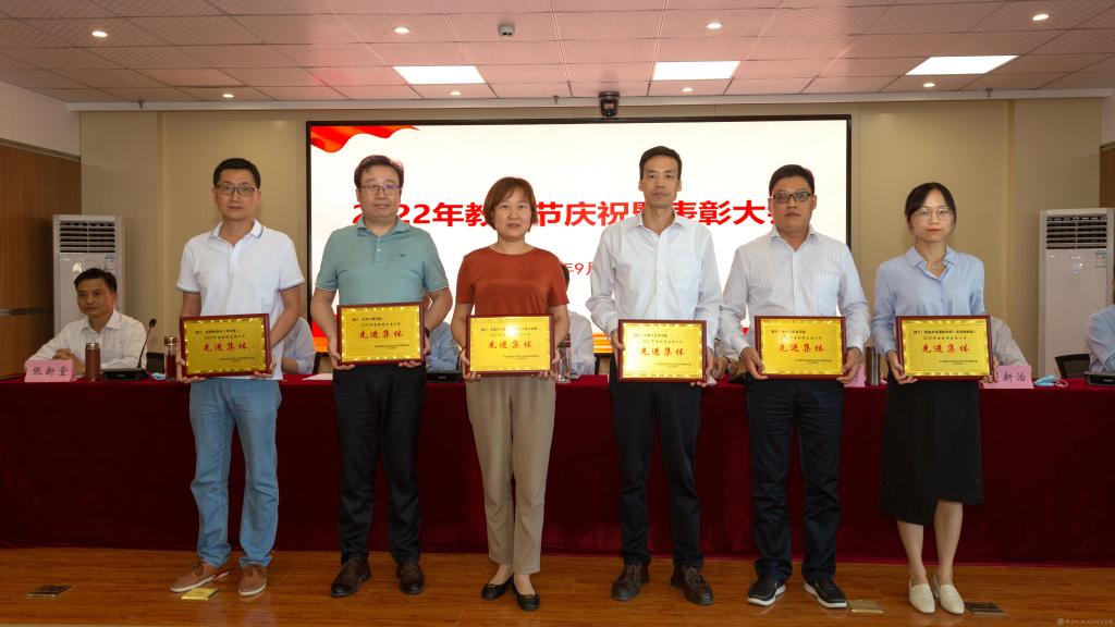 會上,齊曉軍同志宣讀《陜西省教育廳陜西省教科文衛(wèi)體工會 關(guān)于命名2022年陜西省師德標(biāo)兵和師德建設(shè)示范團隊的通知》及《學(xué)院2022年“優(yōu)秀教學(xué)團隊”》表彰文件,我校電子與信息學(xué)院獲得2022年陜西省師德建設(shè)示范團隊稱號,英語教研室、電子系、機電系、建筑系、新能源系等5個系(教研室)獲得“優(yōu)秀教學(xué)團隊”榮譽稱號。