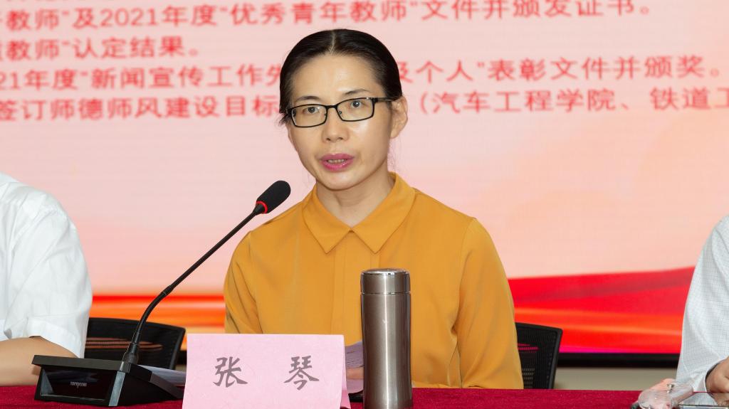 張琴同志宣讀《關(guān)于表彰2022年“最受學(xué)生歡迎的教師”的決定》文件并為獲獎教師代表頒獎。