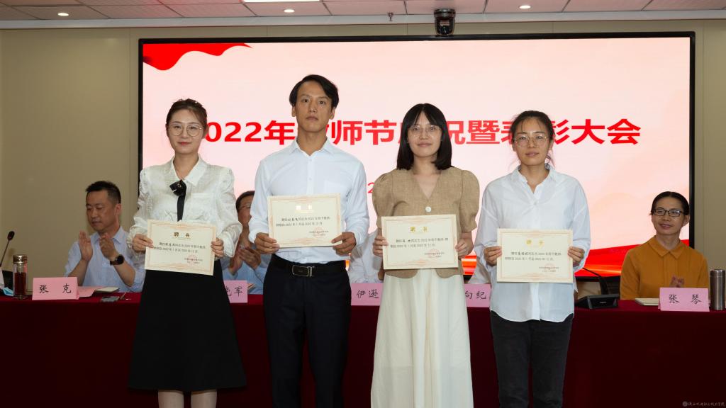 張克同志宣讀2022年“師德先進個人”表彰文件并為獲獎教師代表頒獎。