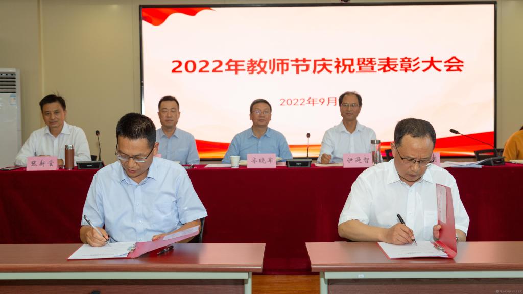 向紀(jì)明同志與部門代表汽車工程學(xué)院、鐵道工程學(xué)院簽訂《師德師風(fēng)建設(shè)目標(biāo)責(zé)任書》。